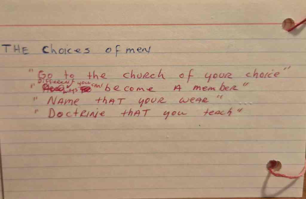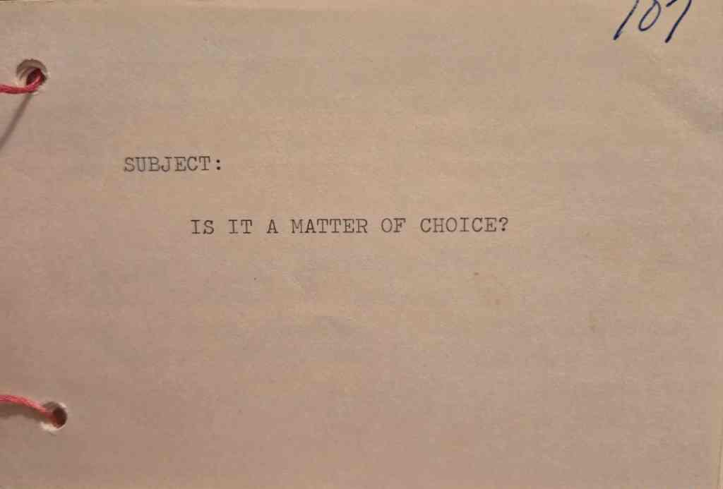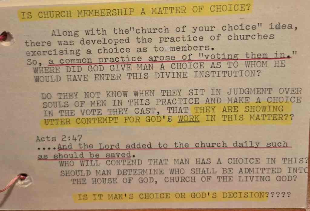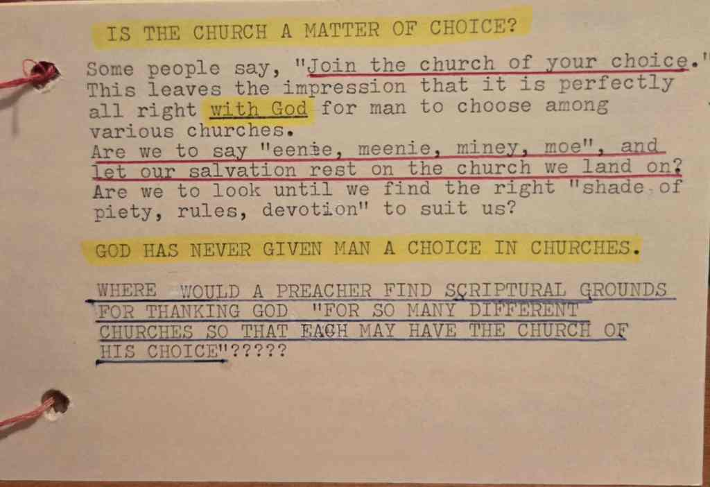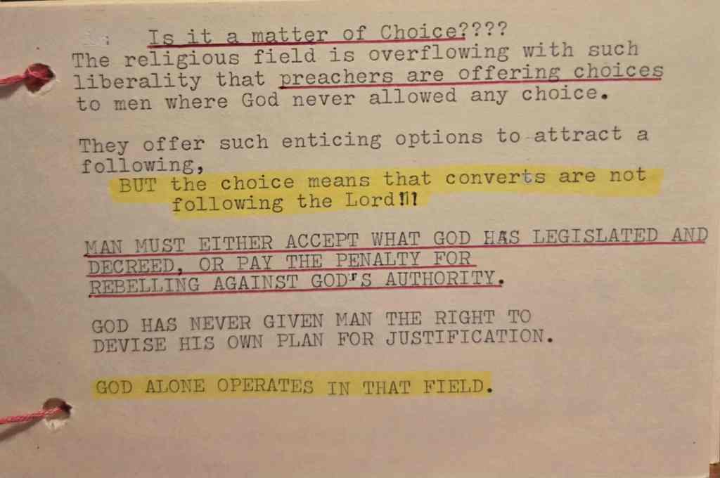 Is It a Matter of Choice? was preached in 1984 by my uncle, although it was likely written by my grandmother, who often typed or drafted his sermons during this period. This sermon was delivered shortly after the death of my grandfather, while the minister’s study was still located in my grandmother’s house. My uncle’s later sermons show a shift in tone after he established his own study, so it is possible that some of the emphases or errors in this sermon reflect my grandmother’s influence rather than my uncle’s personal theology.